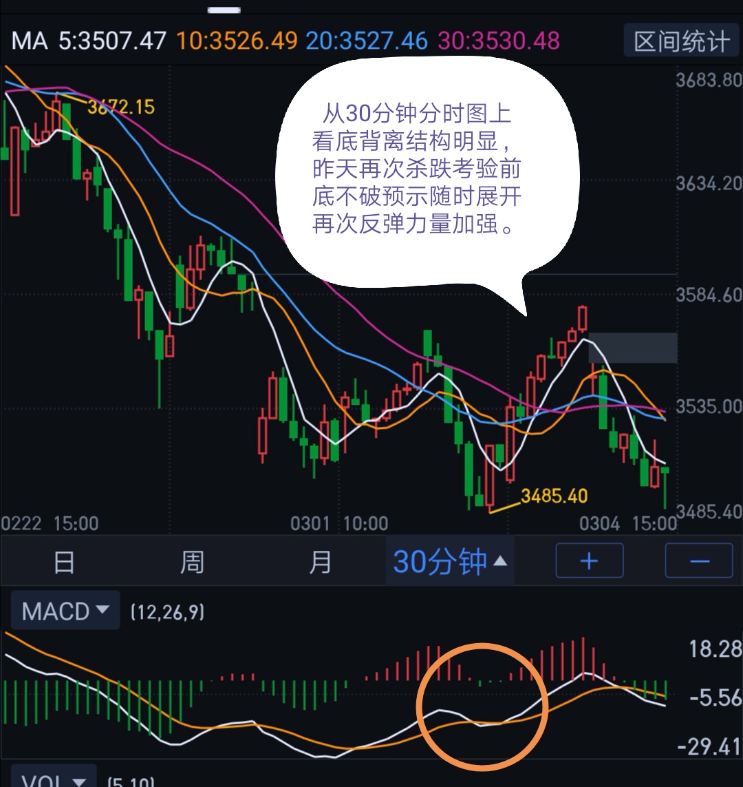 原因主要是以下几个方面:第一从纯技术上分析,日线上春节之前杀跌低点3446.55点有强支撑,本次调整最低下探到3485.40点没有跌破前底,分时图上看底背离特征非常,技术指标修复需求促使大盘随时引发。第二从政策上呵护市场需要看,两会召开维稳必须这样做,其实主力机构已经有所动作。第三目前市场多空博弈加剧,本周指数上窜下跳可以说惊心动魄,周二大跌周三搞出阳包阴,而周四空头反手袭击杀出阴包阳,如果追涨杀跌亏损就大了。昨晚我希望今天搞出阳包阴的,实际上今天只要收到昨天开盘之上3546.46点之上就是阳包阴,这个时候我有如此想法确实有点幼稚?何况美股又是大跌,所以今天恐怕能搞一根十字星就不错了。