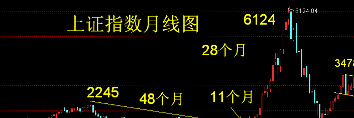1、2245点下跌到998点有一条标准的下降通道,从2245点下跌到998点经历了48个月;