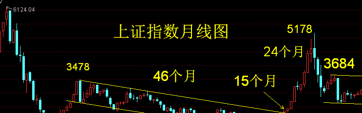 1、3478点下跌到1849点有一条标准的下降通道,从3478点下跌到1849点经历了46个月时间;