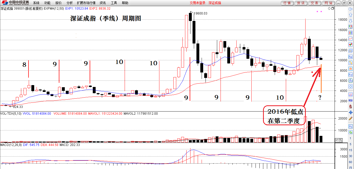 理由1:深圳成指的大周期为9或者10个季度,今年第二个季度是关键时间节点。见下图。