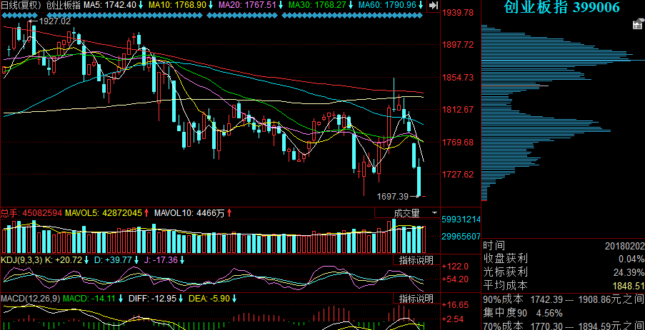 创业板权重股早盘的一波活跃后开始砸盘,而次新股继续领跌。由于年前需要现银的大有人在,因此在分时图上形成了震荡下滑的局面。创指不仅再收一根中阴线,还创了去年7.18反弹以来的新低1697.39点。