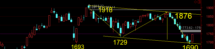 创业板指数从1918点下跌构筑了一个很有规则的旗型整理。
