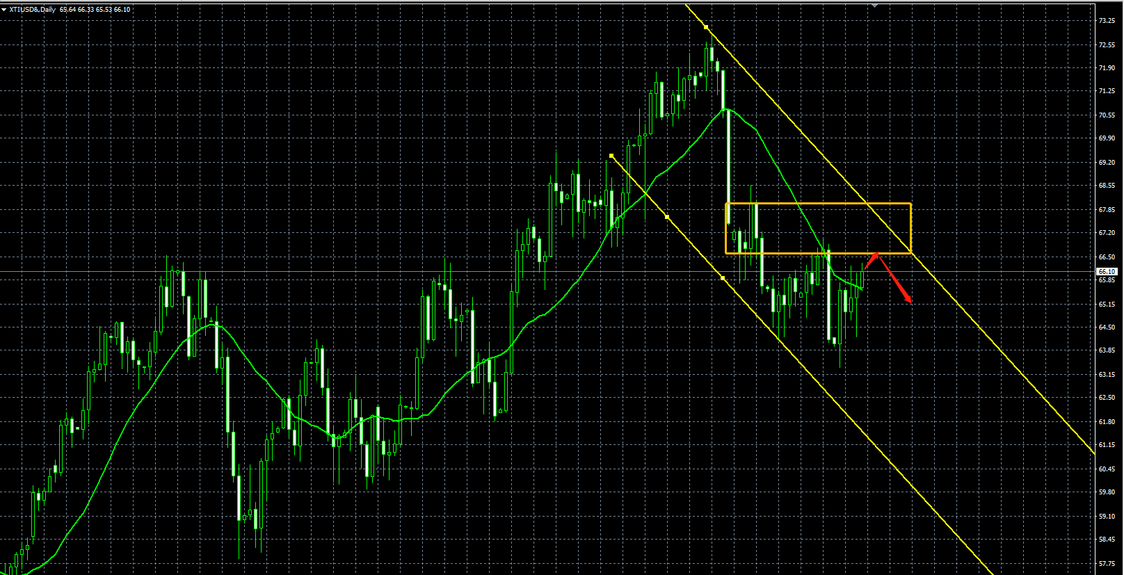 苏声忠分析,从上图可以看出原油日线总体呈下跌趋势,近期上方承压于66.55-67.55,近期承压区间66.55-66.75,日内第一次反弹承压有效继续试仓空单为主。小周期短期走出止跌反弹行情,日内短线关注下方64.7-65.1近期支撑区间,后市回调区间遇阻有效尝试短线多单,近期维持低位大箱体盘整,谨慎追单,踩好节奏,区间交易。