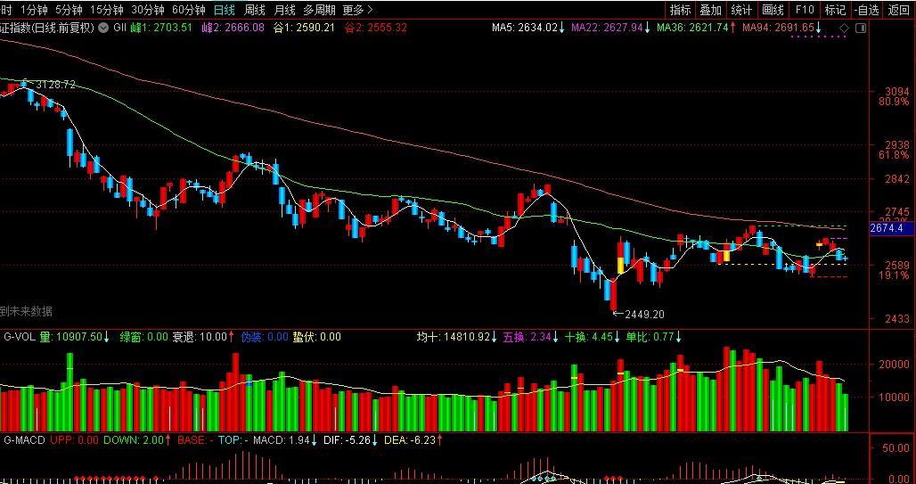 首选浪认为,沪指现在运行在某反弹浪的3---2末段,即将运行3---3,其最近的目标位在2708.98点。