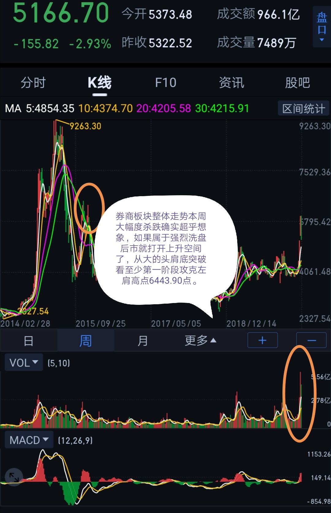 为什么投资者亏损如此之快?原因还是暴涨暴跌踏不准节奏、没选对股票的缘故,不过如此神速疯牛一下子转入疯熊很少人能把握节奏。所以赚钱人也是少数,因为上涨行情路途并不平坦,一个惊吓、一个颠簸就有可能下车,而暴跌来的如此神速,稍不留神就被套,、加上选不对股票等等,再买又套再卖,循环往复追涨、然后再割肉岂能不亏?追高进场特别是选择股票不对,如果不割肉越跌越深亏损更大。更为奇葩的是本次行情的旗手券商板块,本周杀跌完全不亚于其他板块的跌幅,值得注意的是,尽管大盘17日有所反弹,但作为牛市旗手的券商股毫无起色,板块指数大跌超3%,前期备受关注的标杆股光大证券跌停,体量最大的龙头品种中信证券也跌超2%,我周五的亏损也是大幅度加仓券商造成的,不过总市值周线还是十字星。