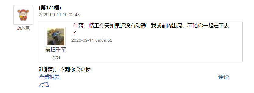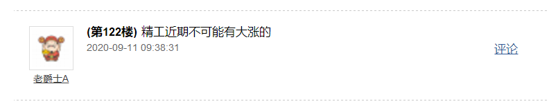 最后大家看看上周部分股友在牛哥文字解盘的时候怎么说精工的吧?大家看看吧??有看跌停的,有看大跌的,有看补缺口的,有说不会拉升的,有说割肉的,其实主力最喜欢你们这种不坚定的,不洗你洗谁?但牛哥是洗不出去的,牛哥思路非常清晰,就是拿稳筹码,因为它价值估值不变我是坚定拿稳的,中途的震荡就是风景,淡定即可,看好精工的逻辑很多很多,毕竟这里人多眼杂,牛哥也不便多说,会影响走势,很多重要的提示包括未来它的目标等等,我都会文字里慢慢跟大家说的,这样也能过滤一些不细心看牛哥的股友,所以大家要及时的看牛哥每天的文字解盘包括晚评,,